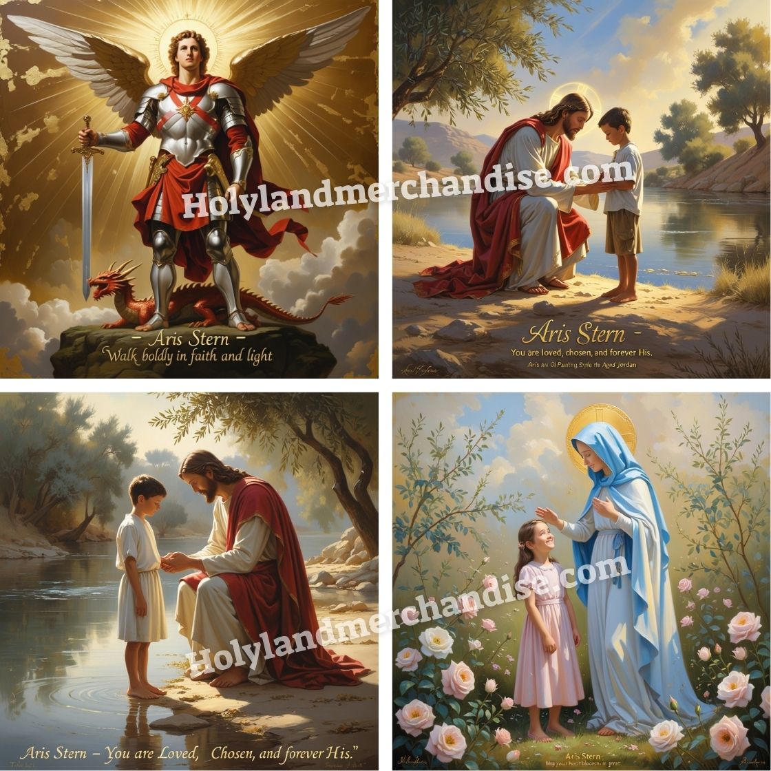 Honor your favorite saint or spiritual protector with a personalized Christian artwork, hand-crafted digitally in rich oil & gold style on aged parchment.