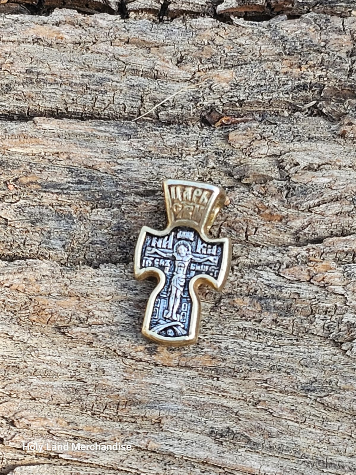 Handcrafted 925 Silver and Gold Cross Pendant – Elegant Dual-Sided Design