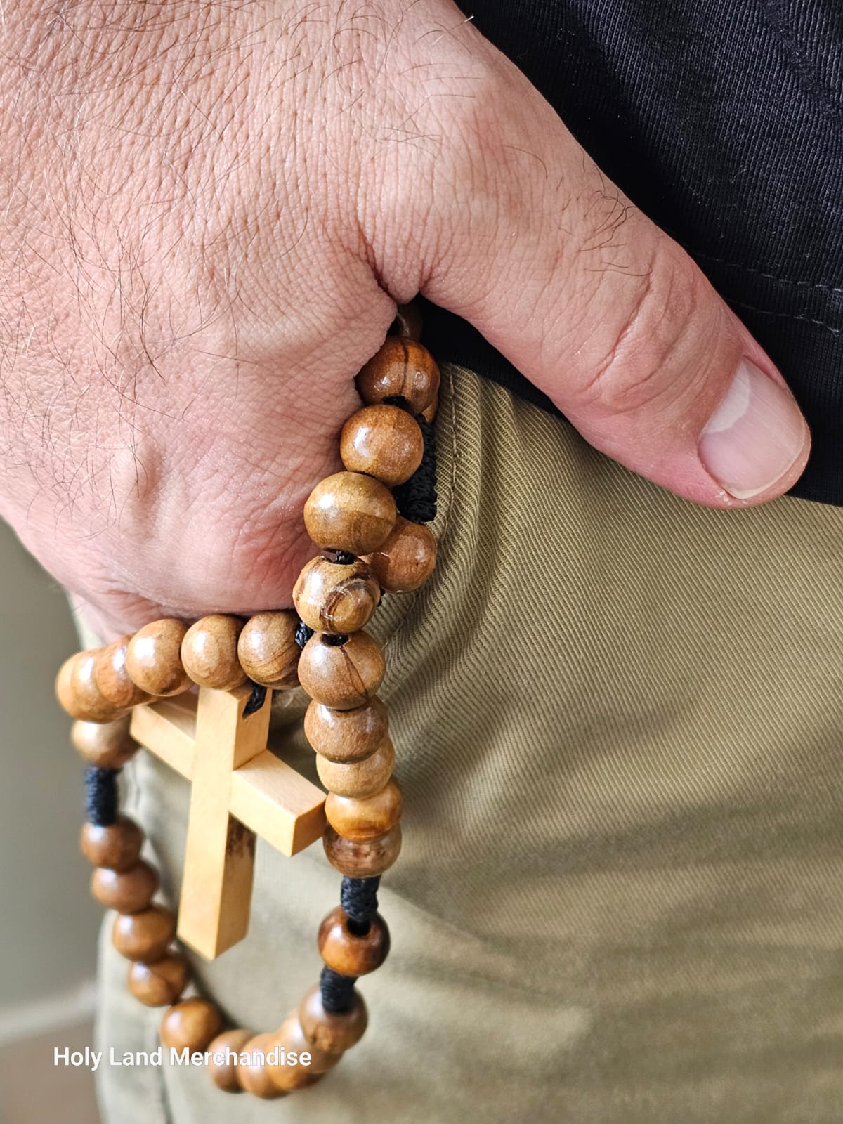 The rosary is handmade in Bethlehem by a long-standing Christian family, the beads themselves are also prepared by the same family. Definitely a special Rosary.