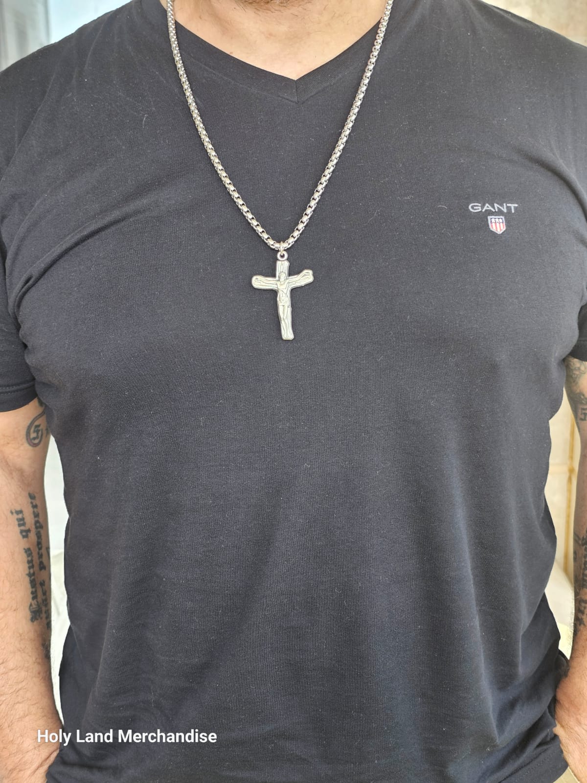 Materials: solid stainless-steel cross + large-link stainless-steel chain