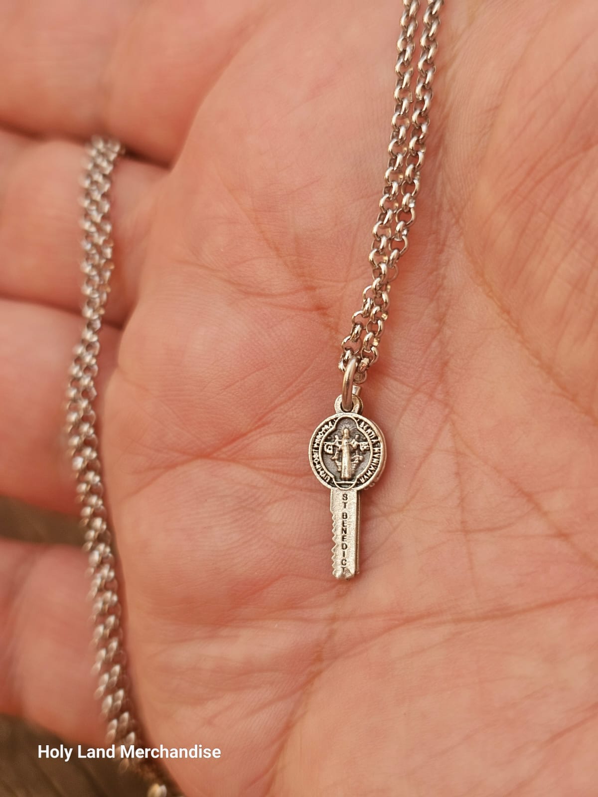 Saint Benedict Key Necklace – Vade Retro Satana – Exorcism Key Cross Necklace – Christian Gift