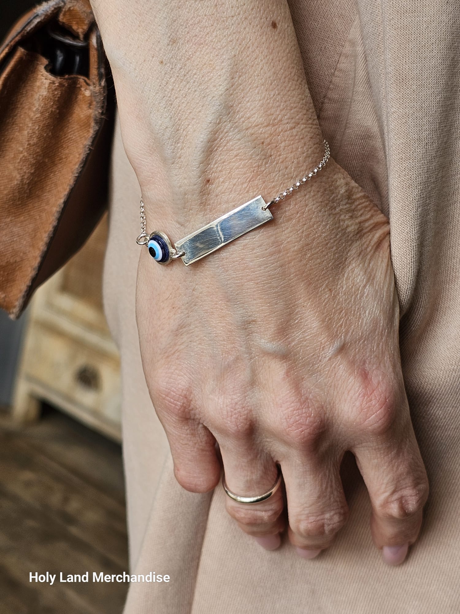 Silver 925 Evil Eye Beaded Bracelet pendant – Protection Jewelry Can be engraved with no extra charge