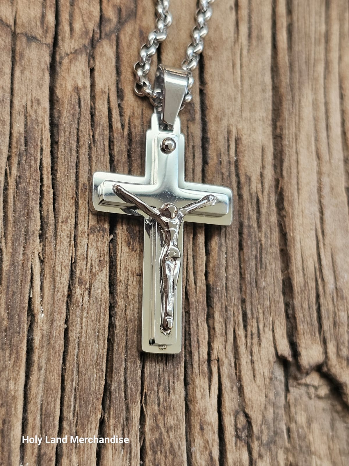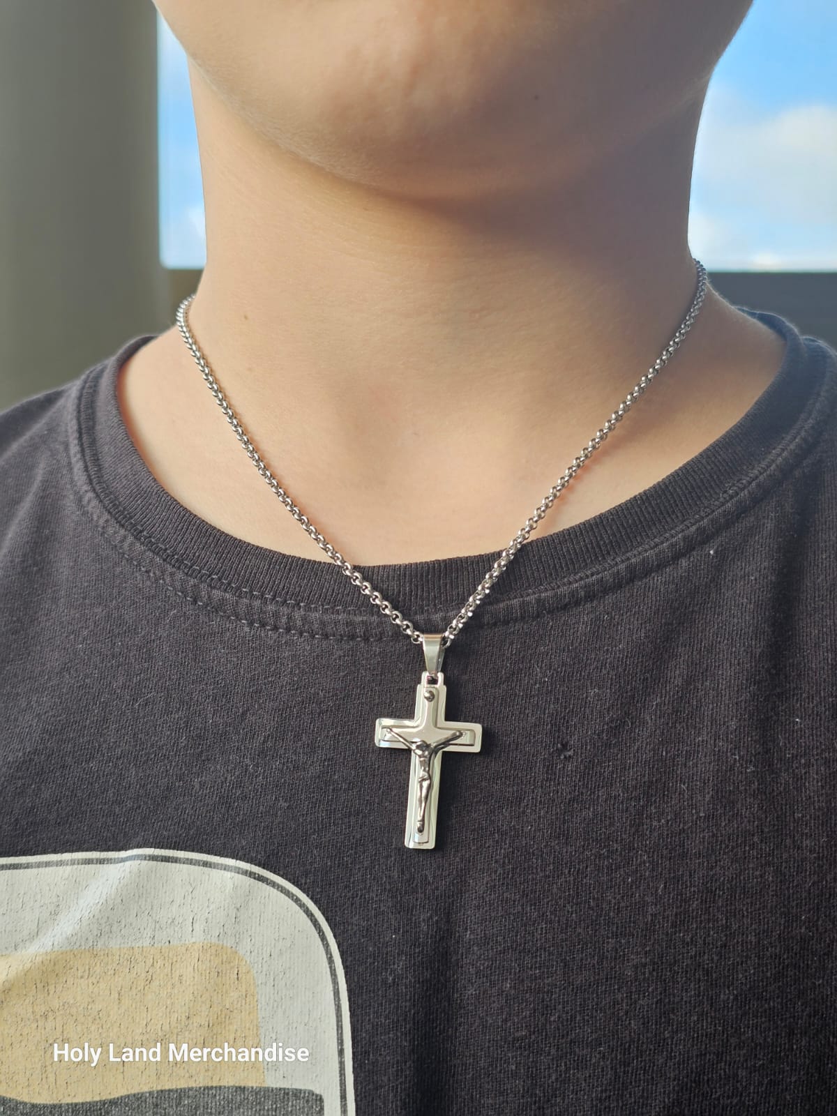 Elegant and durable stainless steel crucifix necklace designed especially for boys and teens.