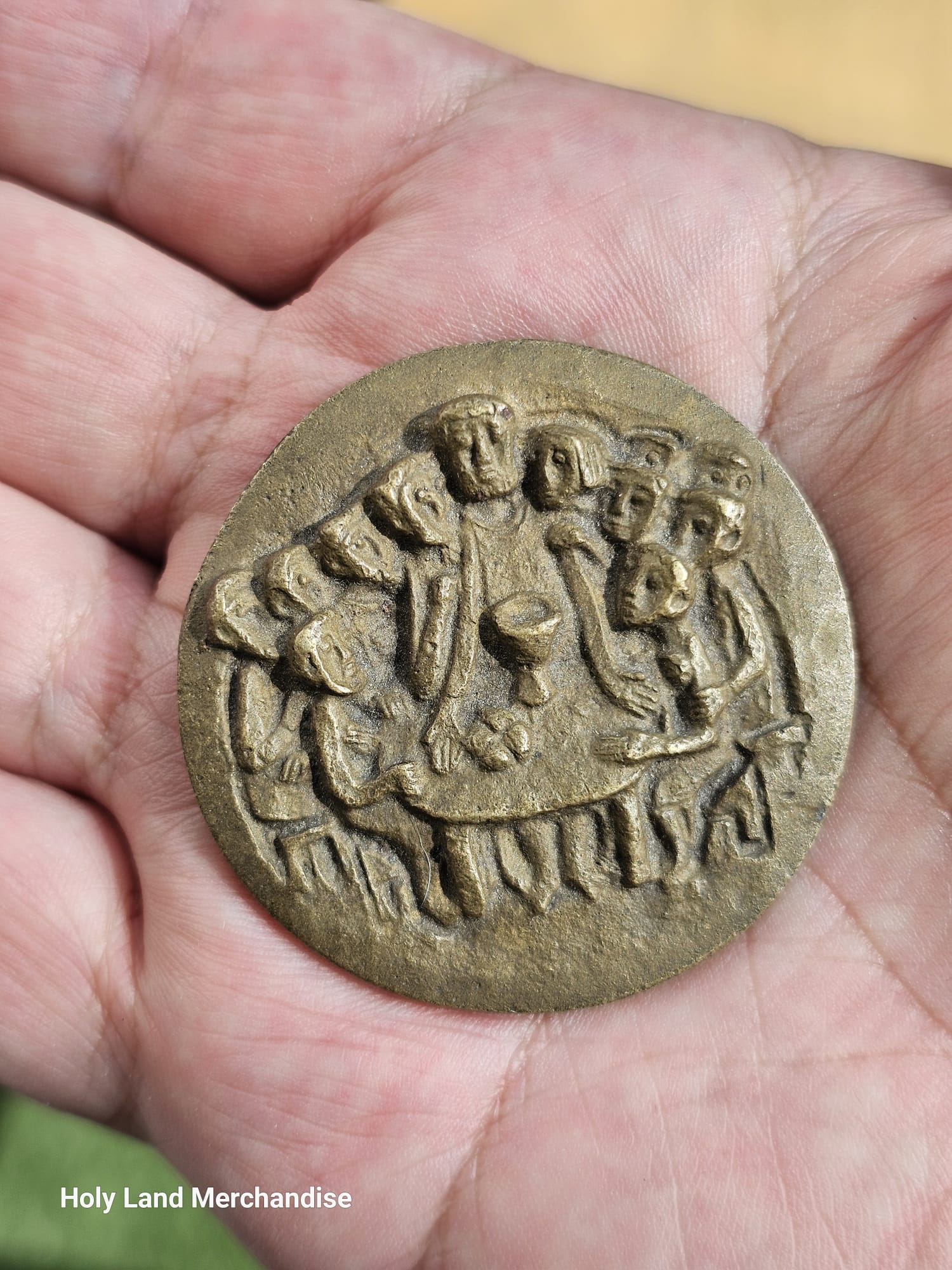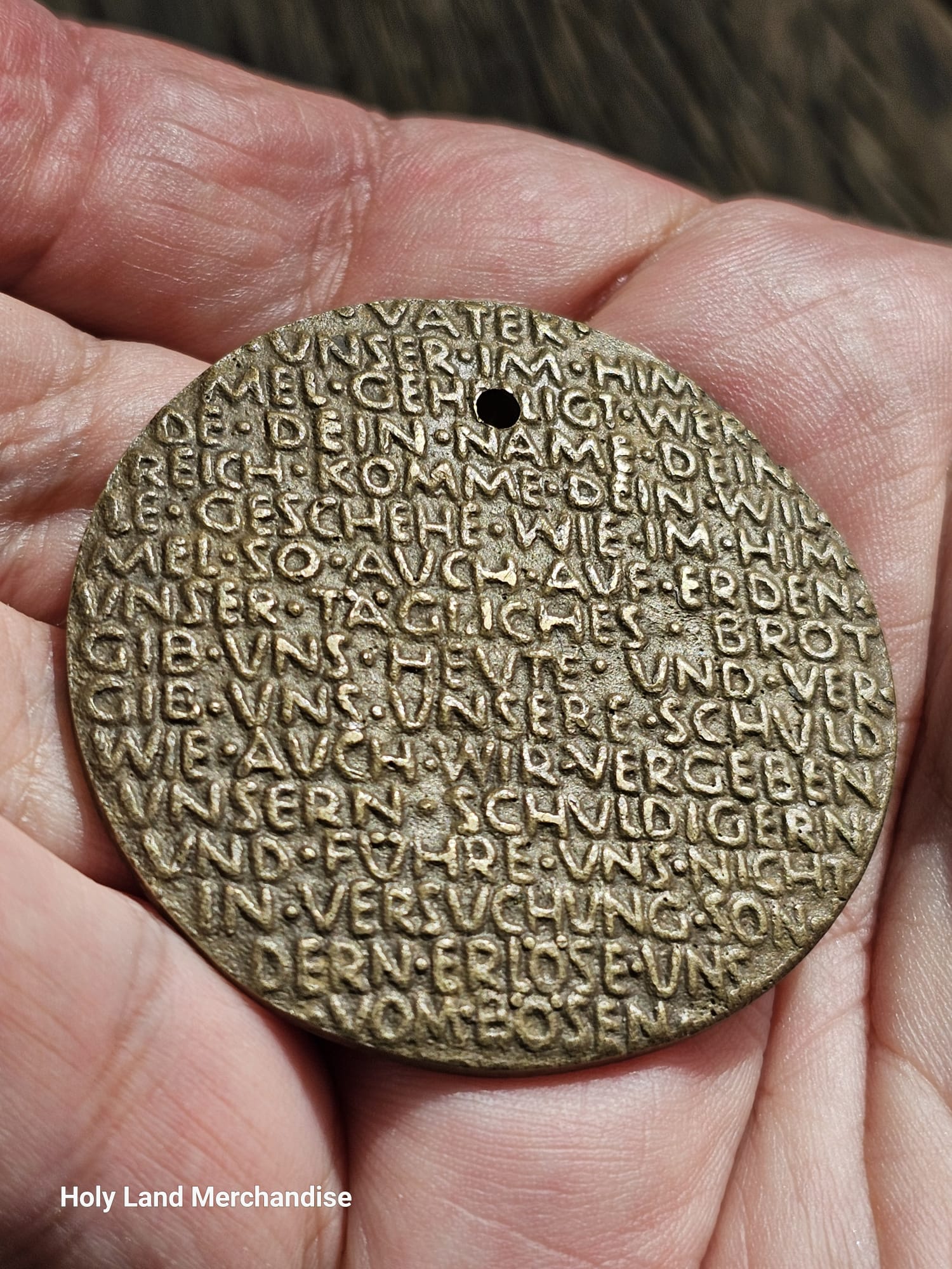 Beautiful handcrafted Bronze medallion depicting The Last Supper on the front and the Lord’s Prayer (Vaterunser) engraved in German on the back.
